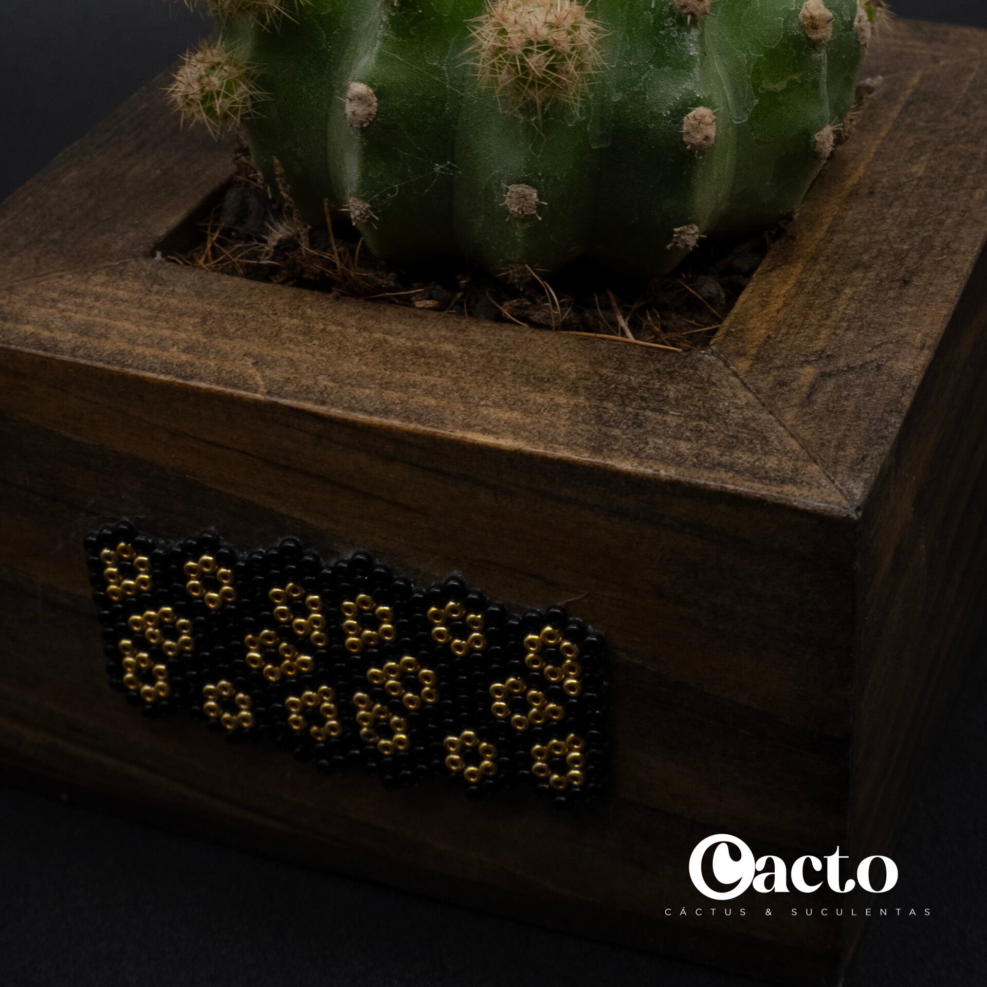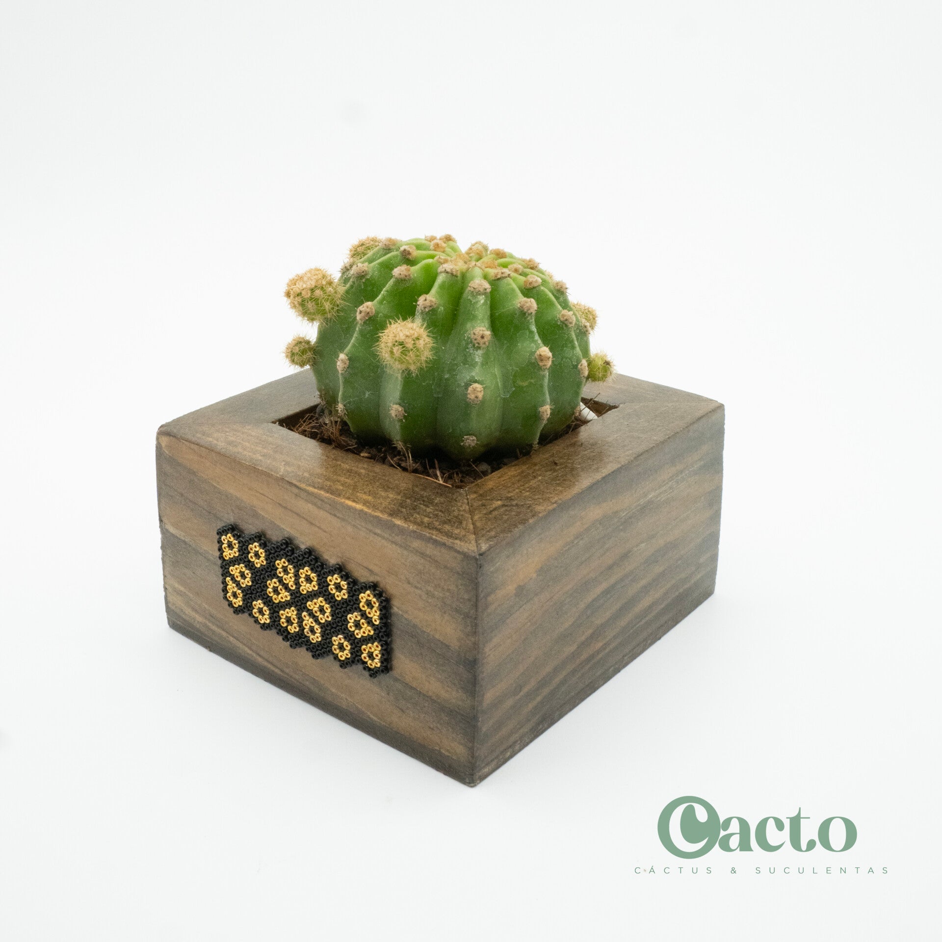Base de madera 10×10 cm trabajada con cuidado para resaltar la belleza natural del material. Una pieza atemporal que acompaña al cactus con equilibrio y calidez, ideal para hogares u oficinas.